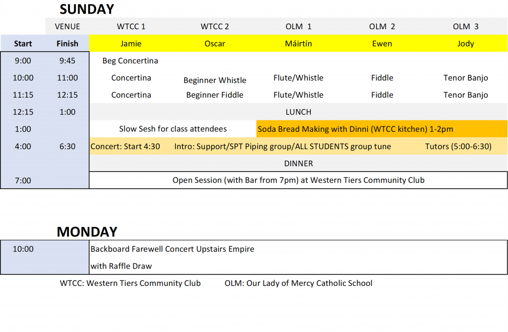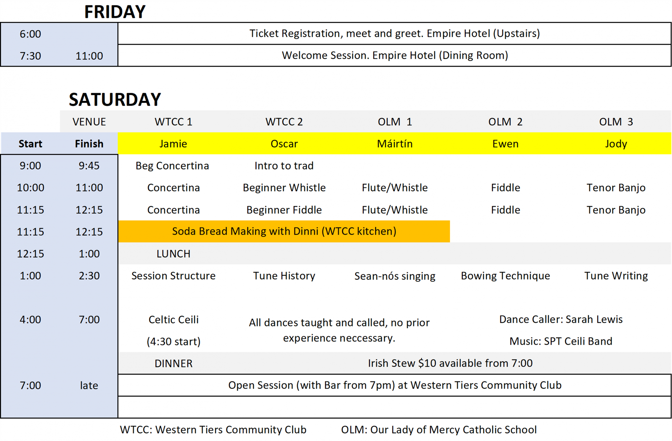 This is the structure of the weekend, we may update this current version with more information or minor adjustments before the weekend. Follow Session Players Tasmania on Facebook for the latest updates.